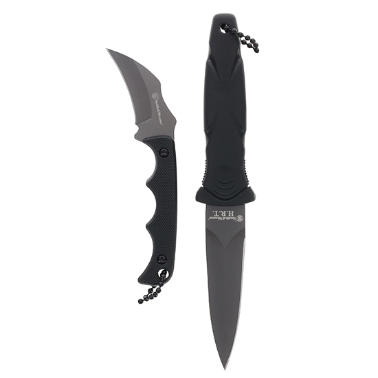 SWHRT3B Boot Knife – 3Cr Stainless Steel Blade with a False Edge Blade – 3.25 Titanium Nitride Blade – Black Rubberized Handle – Molded Polymer Sheath with Belt Clip and Neck Chain – Karambit Neck Knife – 3CrSteel Blade – 2 Titanium Nitride Blade – Black Polymer handle with G10 Texture – Molded polymer Sheath with Belt Clip and Neck Chain