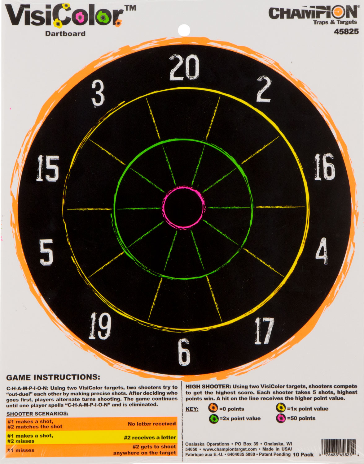 Champion Targets 45825 VisiColor Dartboard Hanging Paper Multi Color 11″x14″ Dart Board 10 Pack