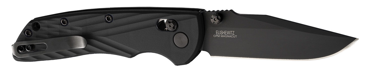Hogue Deka 3.25″ Folding Clip Point Plain Black Cerakote CPM MagnaCut SS Blade, Black Crosshatch Textured GRN Handle, Includes Pocket Clip