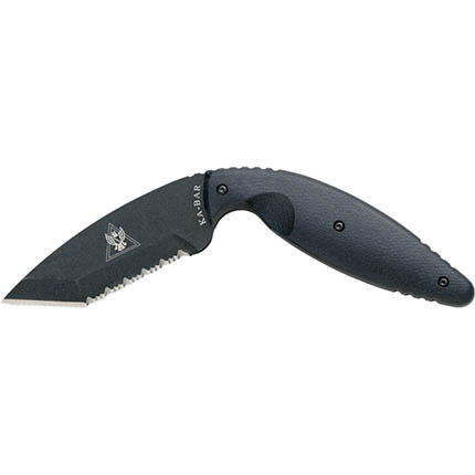 ~KA-BAR TDI Large 3.688″ BL/FS Tanto Black Zytel Scales; AUS8A; Plastic Sheath w/belth clip