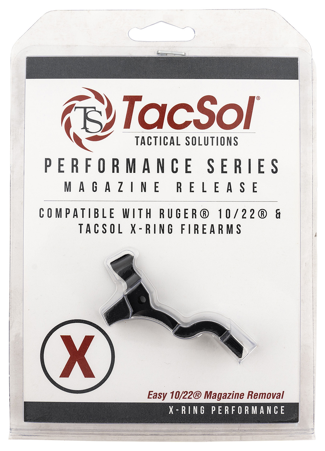 The Tactical Solutions PMR [Performance Magazine Release] is a low profile, easy-to-use magazine release for the Ruger 10/22 and TacSol X-Ring rifles. The Performance Magazine Release is a shorter design than the popular TacSol Extended Magazine Release. This magazine release is easy to install and makes removing your magazine easy without searching for the magazine release button. It is machined from a solid block of 6061-T6 aluminum and is designed to conform to the shape of the trigger guard. The magazine release is laser engraved with the TacSol name and comes standard in eight different colors.