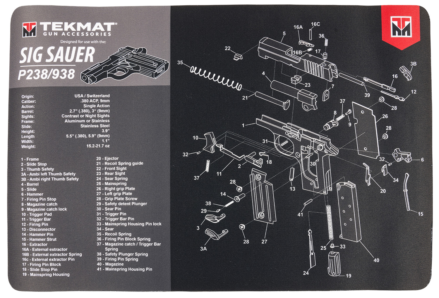 TekMat TEKR17SIGP238 Sig Sauer P238 Cleaning Mat Black/Gray Rubber 11″x17″ Sig P238 Parts Diagram